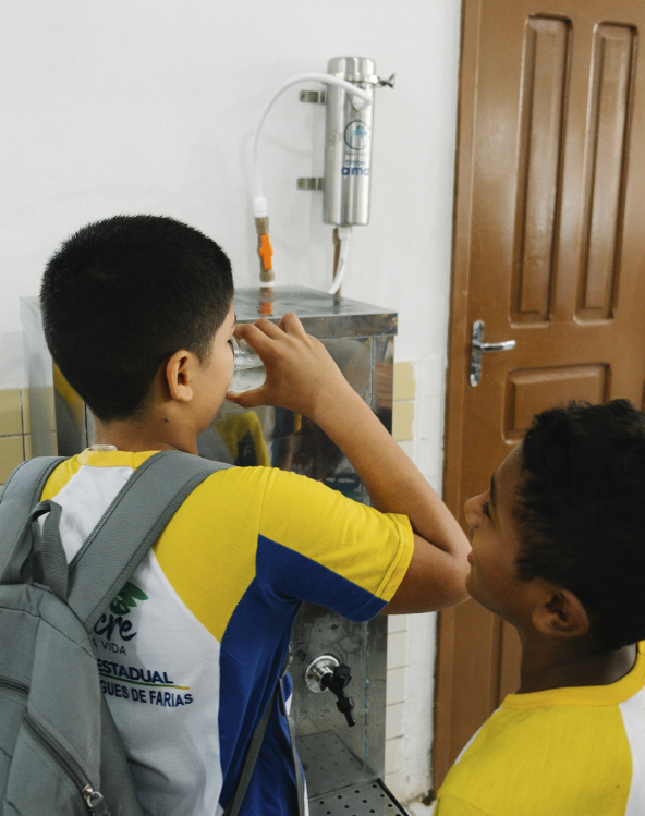 "Então, hoje a gente tá recebendo vocês aqui para instalar filtros, para que as nossas crianças e nós mesmos funcionários tenha acesso a água de qualidade, isso é muito bom!"