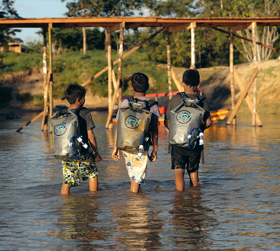 Mochilas com capacidade de armazenar e filtrar até 15 litros de água por vez chegam onde a água poluída causa diarreia, vômitos e verminoses.